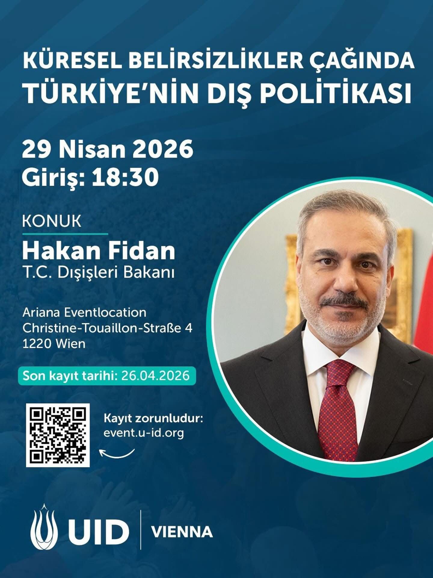 VİYANA - SNmedia.at/Etkinliğin, UID Vienna organizasyonuyla, 1220 Viyana’da bulunan Ariana Eventlocation’da gerçekleştirileceği açıklandı. Programın, Türkiye’nin dış politika vizyonuna ilişkin önemli değerlendirmelere sahne olması bekleniyor.