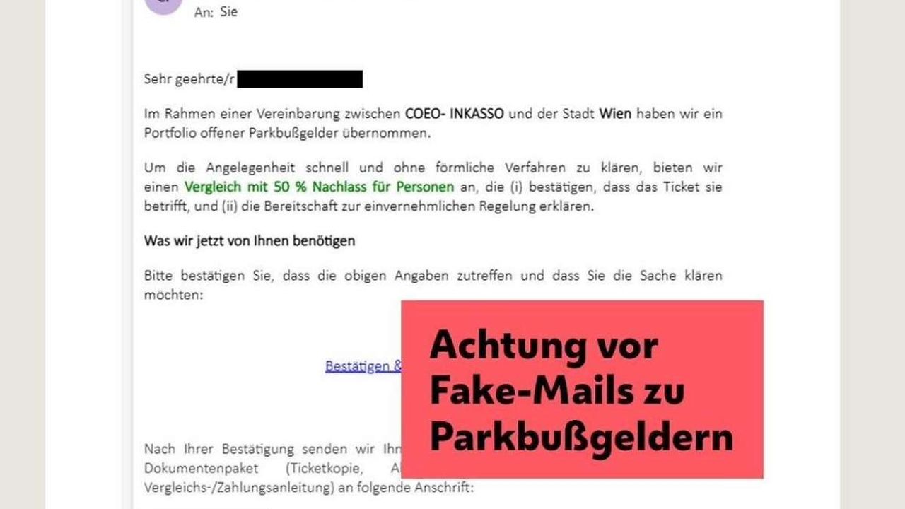 VİYANA - SNmedia.at/Sahte e-postalarda, “COEO-Inkasso” adlı sahte bir borç tahsilat kuruluşu, Viyana Belediyesi adına park cezaları için ödeme talebinde bulunuyor. Mesajlarda, borcun doğrulanması halinde “yüzde 50 indirimli ödeme anlaşması” gibi cazip tekliflerle vatandaşlar kandırılmaya çalışılıyor.
